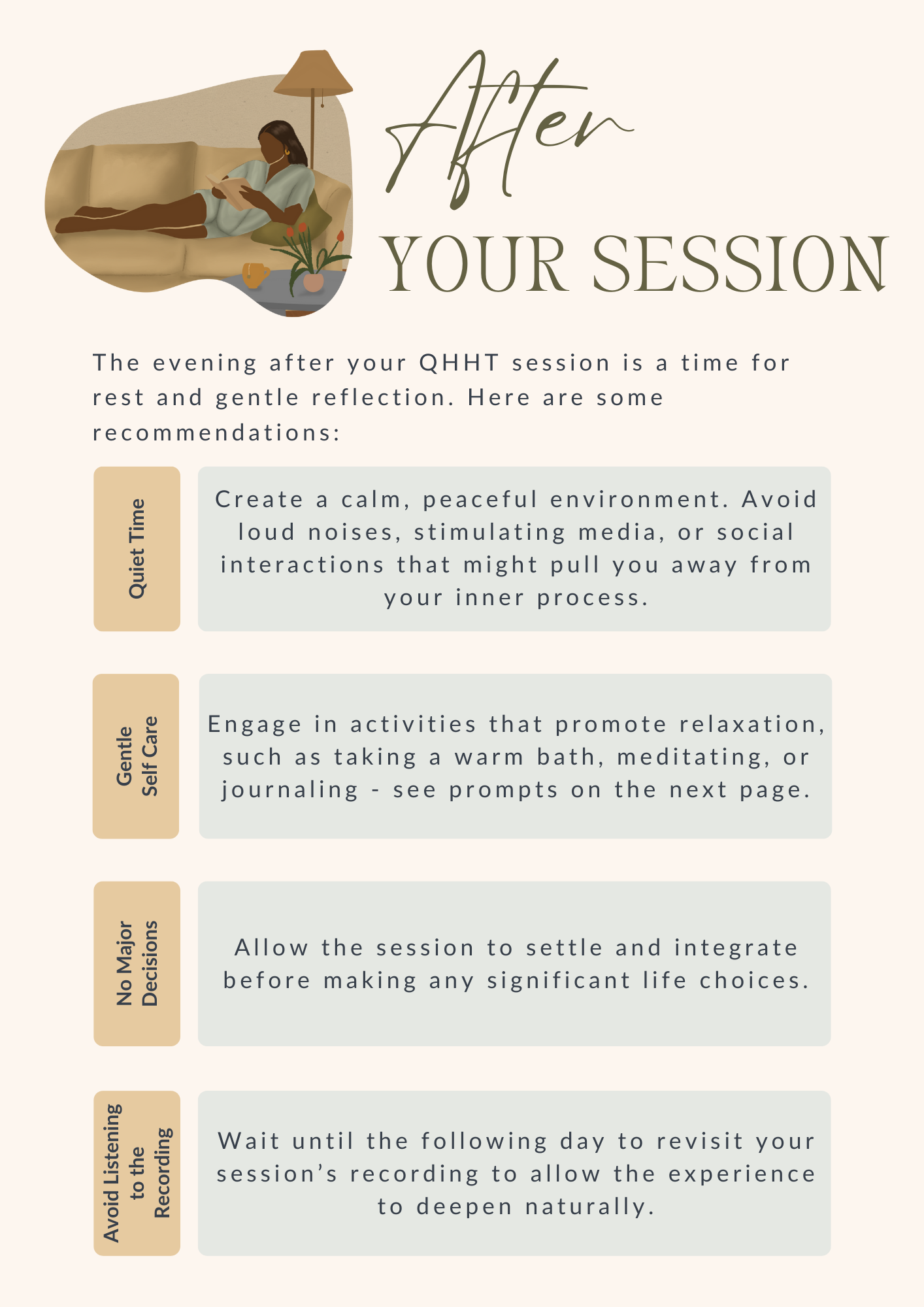 These post-session resources are designed to help you fully embrace the transformative power of your QHHT experience, empowering you to align with your Higher Self and move forward with clarity and purpose.